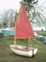 thus enabling you to wheel the Boat like a wheelbarrow. This Boat is available with a sailing option, the rig includes Mast, Boom, Gaff, Daggerboard, Rudder and standing Lug sail. (including all ropes and